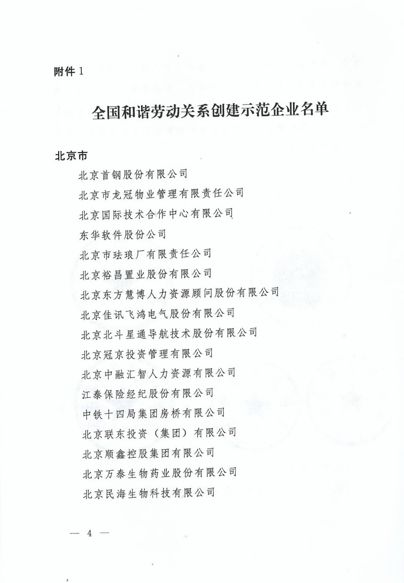 北京裕昌置業(yè)股份有限公司榮獲全國和諧勞動關系創(chuàng)建示范企業(yè)榮譽稱號