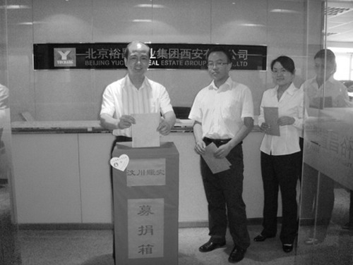 ? ? ? ? 北京裕昌置業(yè)集團(tuán)西安有限公司捐款10萬(wàn)元,組織員工捐款2萬(wàn)元