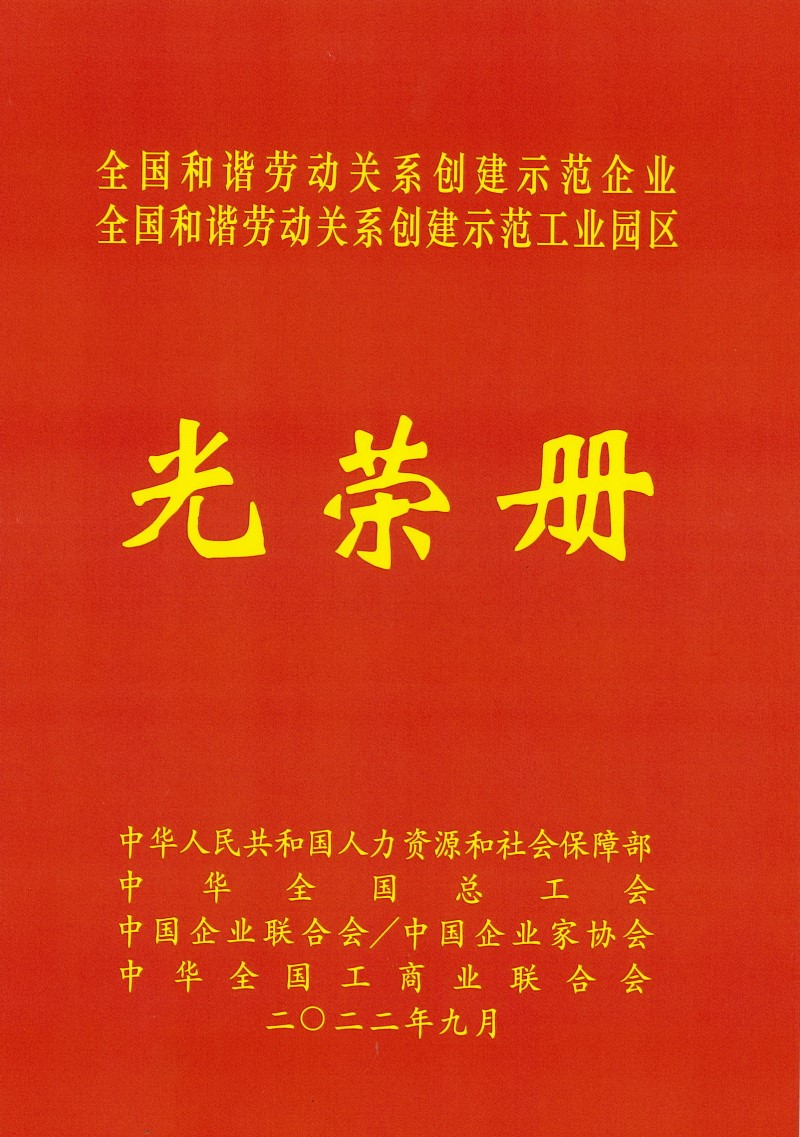 為貫徹落實習近平總書記關于構建和諧勞動關系的重要指示精神,推動構建新時代中國特色和諧勞動關系,2022年9月16日,人力資源社會保障部、中華全國總工會、中國企業(yè)聯(lián)合會/中國企業(yè)家協(xié)會、中華全國工商業(yè)聯(lián)合會聯(lián)合印發(fā)《關于命名全國和諧勞動關系創(chuàng)建示范企業(yè)與工業(yè)園區(qū)的決定》。北京裕昌置業(yè)股份有限公司等全國350家企業(yè)被命名為“全國和諧勞動關系創(chuàng)建示范企業(yè)”。
