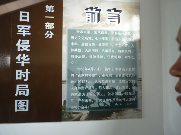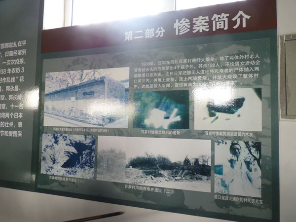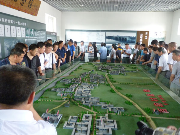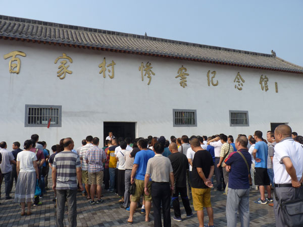 本次參觀作為公司“兩學一做”學習教育活動之一,意在讓廣大黨員牢記歷史,鼓舞斗志。紀念館的張館長年近70歲,他的長輩都是“百家村慘案”的受害者,他的爺爺在慘案中被殺害,他滿含悲愴地給大家講述了“百家村慘案”的經(jīng)過。盧溝橋事變后,日軍侵占了邯鄲駐扎在平漢路西側(cè)的龐村、孟仵、王朗村,日寇經(jīng)常到百家村搶掠騷擾、奸淫婦女,許多良家婦女遭受過鬼子的凌辱。一次次的搶掠,一次次的侮辱,激起了民憤!1938年4月23日,又有兩個日本鬼子到百家村尋找“花姑娘”,當年的熱血青年郭運昌、郭永昌等十一名壯士不甘受辱,義憤填膺,奮起將兩個日本鬼子打死,為村民報仇雪恨!但是,日本鬼子發(fā)現(xiàn)少了兩個日本兵后,便一路尋找到百家村,將百家村的村長和百姓抓起來嚴刑逼供拷問。村民郭玉東被鬼子赤身綁在一棵樹上,無論鬼子問什么,他都說“不知道”,鬼子用刀在他的胸口、臉上亂戳亂劃,鮮血模糊了他的全身,但他仍一個字不說,鬼子又提來一壺開水,從他的頭上澆了下去…鬼子使勁了招數(shù),也沒有得到他們想要的東西。喪心病狂的日本鬼子又從人群里拉出師家一位年輕的媳婦,讓一個傻子當眾對她奸污,師家媳婦受此奇恥大辱,掙脫后縱身跳入不遠處的一口井里死去!日軍的暴行并沒有讓百家村的百姓們屈服,村民們不管男女老少任憑鬼子使勁任何淫威,沒有一個人招認!日本鬼子見從老百姓的嘴里得不到他們要找的“兇手”,鬼子的小隊長下令把村民一個個綁了起來押往村外的西瓦溝,在村邊兩口井的旁邊開始了慘無人道的大屠殺!萬惡的日本鬼子將村民們有的砍下頭顱、有的開膛破肚,用刺刀挑出腸子,有的綁起來倒墜入井里活活嗆死,并用刺刀將大部分村民推入井里!前、后百家村除提前逃走的部分村民,剩余的整整128口人,不論男女老幼全部被鬼子殺害!瘋狂的日軍又將所有的尸體全部拋入兩口井內(nèi),再堆上麥秸,潑上汽油焚燒,并放火焚燒了整個村莊,制造了駭人聽聞、震驚冀南大地的“百家村慘案”!在日本侵略者侵略中國的8年時間里,象百家村慘案以及震驚中外的南京大屠殺慘案,日本鬼子不知道制造了多少起!二戰(zhàn)期間,日本鬼子在中國犯下的滔天罪行真是罄竹難書!