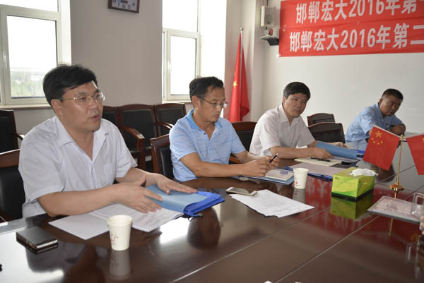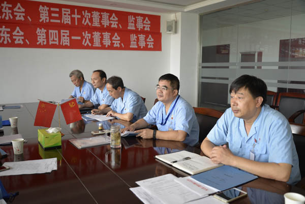 邯鄲宏大化纖機械有限公司2016年第一、二次股東會暨第三屆第十次董事會、監(jiān)事會,2016年第四屆第一次董事會、監(jiān)事會于7月25日,在邯鄲宏大召開。會議由公司董事董事長杜榮念召集并主持,會議對公司股東會、董事會、監(jiān)事會各項議案進行了表決。股東代表鄭州紡機黨委書記劉延武、邯鄲紡織機械有限公司董事長杜榮念,董、監(jiān)事會成員鄭州紡機總工程師李新奇、鄭州紡機人力資源部部長桑高峰、邯鄲宏大黨委書記張鳳和、邯鄲宏大勞動人事處處長郭香成參加會議。董事會秘書薛旭東、副總經(jīng)理邱進才、經(jīng)濟運行處處長馬德彬列席會議。