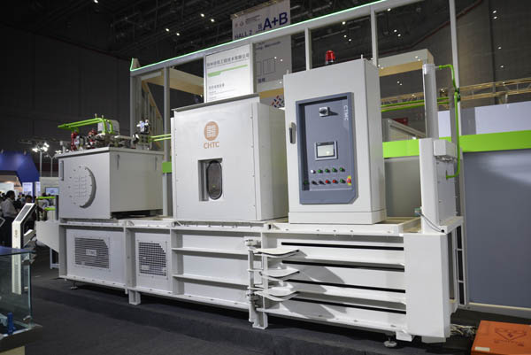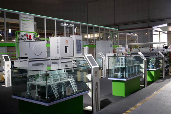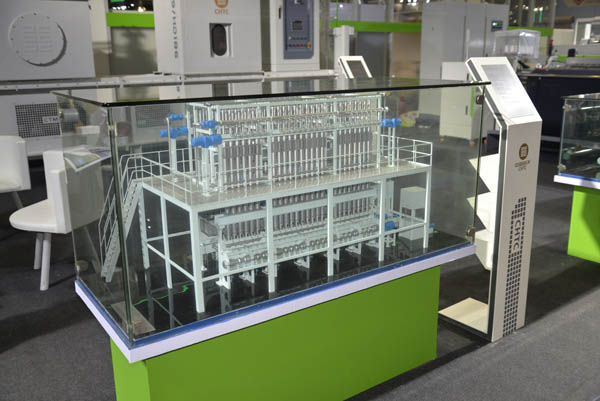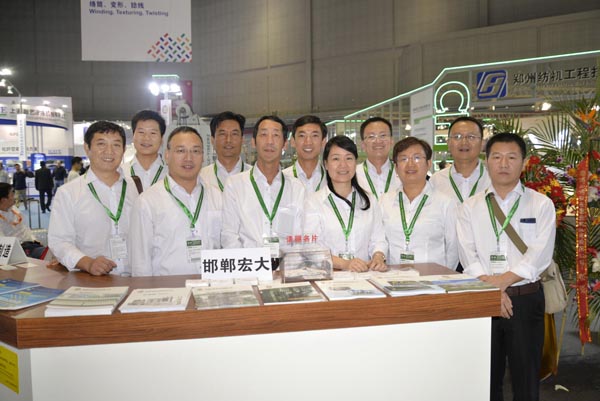在展覽會上,我公司展出HR/HD372型粘膠短絲紡絲機(模型)、H7/HD305B型濕法紡絲機(模型)、K7/HD3210型干法紡絲機(模型)以及KR/HD340型粘膠長絲連續紡絲機(模型)、H9/HD186型臥式打包機樣機。