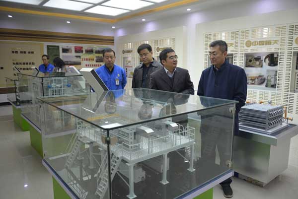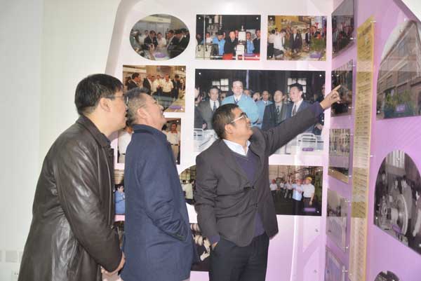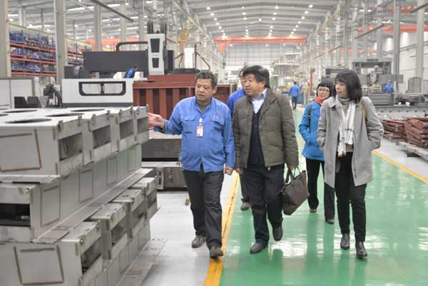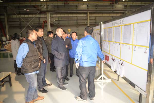 邯鄲宏大公司總經理杜榮念、黨委書記邱進才、黨委副書記、紀委書記、工會主席況聯勇、副總經理王長武陪同葉茂新一行視察了公司產品展廳。杜榮念對邯鄲宏大的發展歷程和未來發展規劃做了介紹,并結合產品模型和照片對企業的產品研發和銷售情況做了簡介。之后,葉茂新一行視察了生產工作現場和生產處工作大廳。在生產現場,主管生產的副總經理王長武就邯鄲宏大目前的生產形勢和企業的精益管理工作所取得的成績向葉茂新一行作了匯報。邯鄲宏大目前生產任務飽滿,職工們情緒高漲,正在大干四季度,為完成全年的工作目標而努力,葉茂新對現場干凈整潔的環境,擺放有序的機件表示滿意。在視察機加工現場時,王長武結合現場的一個機件,詳細介紹了從原來的十幾道工序,經過技術改進和工裝的改進,現在只需要一次夾裝就可以加工完成,極大的提高了工作效率。在鉚焊分廠工作現場,王長武結合企業精益管理中實行的“配餐制”,職工們當天需要加工的產品機件和圖紙、工裝、工具,一律由“配送中心”用配送車方式集中配送到每個人面前,職工們拿起圖紙和工具就能干活,大大減少了職工的準備工作時間,提高了工作效率,職工們的收入也得到了相應的提高。葉茂新對邯鄲宏大目前的經營生產形勢非常滿意,對企業搬入新廠區后翻天覆地的變化表示贊賞,并提出了很多指導性意見。