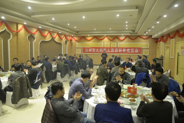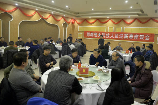 2018年2月9日,邯鄲宏大召開科技人員座談會。公司總經理杜榮念、黨委書記邱進才攜公司領導班子成員以及來自公司各部門的技術人員和科技人員共計60余人參加了座談會。會議由黨委副書記、紀委書記、工會主席況聯勇主持。