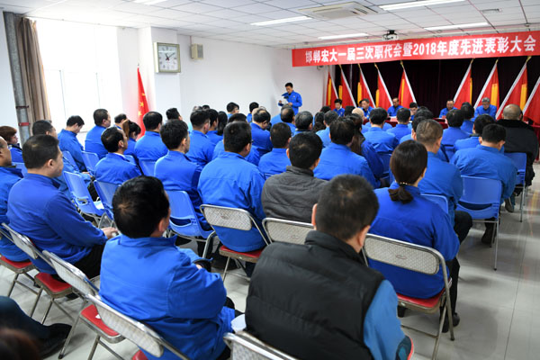 舊歲已展千重錦,新年更進百尺竿。2018年是我們企業走過的第六十個春秋。回顧過去一年的歷程,我們在充滿奮斗與坎坷的路上,收獲著拼搏的豪情和勝利的喜悅。為總結經驗,表彰先進和確定2019年工作目標和任務,邯鄲宏大一屆三次職代會暨2018年度先進表彰大會于1月18日在公司大會議室隆重召開。共有120多名正式職工代表、列席人員和受到表彰的人員參加了會議。大家齊聚一堂,集思廣益、建言獻策,共同謀劃企業發展大計。