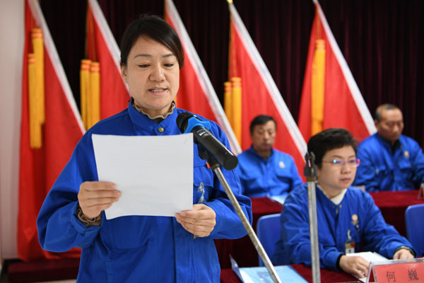 生產部副部長、生產處處長李澤民、化纖經銷處副處長宋淑英、研究所副所長李平威分別代表生產線、銷售線、開發線在會上發言表態,決心認真貫徹落實杜總行政工作報告和職代會精神,夯實基礎管理,提高產品質量,深化精益管理,堅持“創新、創造、鞏固、提升”的工作主線,以奮發有為的干勁,迎接挑戰,努力完成全年經營目標和工作任務。