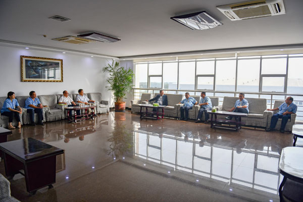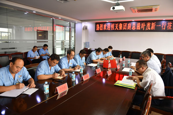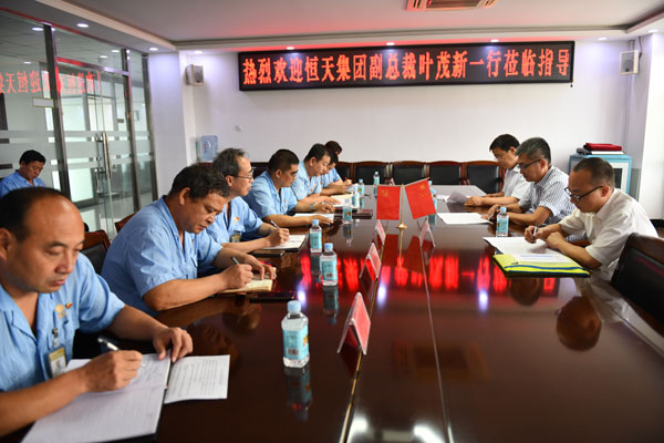 2020年9月16日,中國恒天集團副總裁葉茂新、運營管理部副總經理陳忠民等一行到邯鄲宏大考察調研工作。邯鄲宏大董事長、黨委書記杜榮念,總經理王長武以及公司班子成員一起陪同調研。