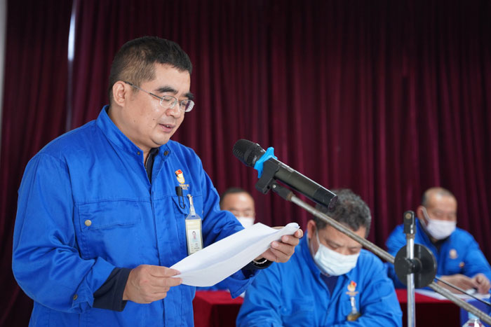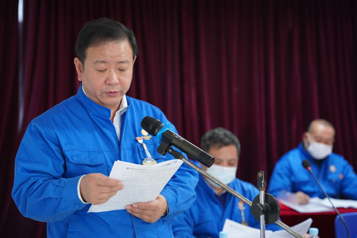 公司副總經理王志兵宣讀關于表彰2020年度先進集體、先進個人的決定以及公司黨委表彰2020年度先進黨支部、黨員先鋒崗、優秀黨務工作者及優秀黨員的決定。