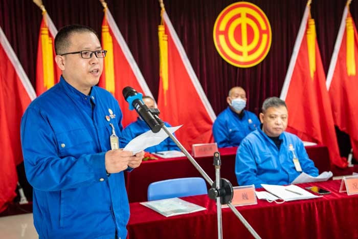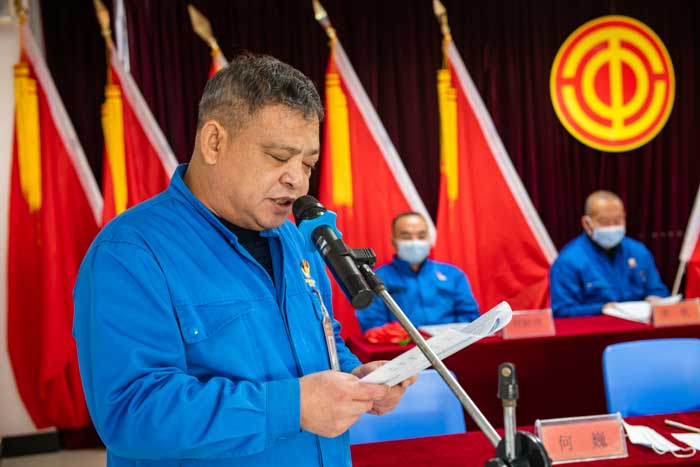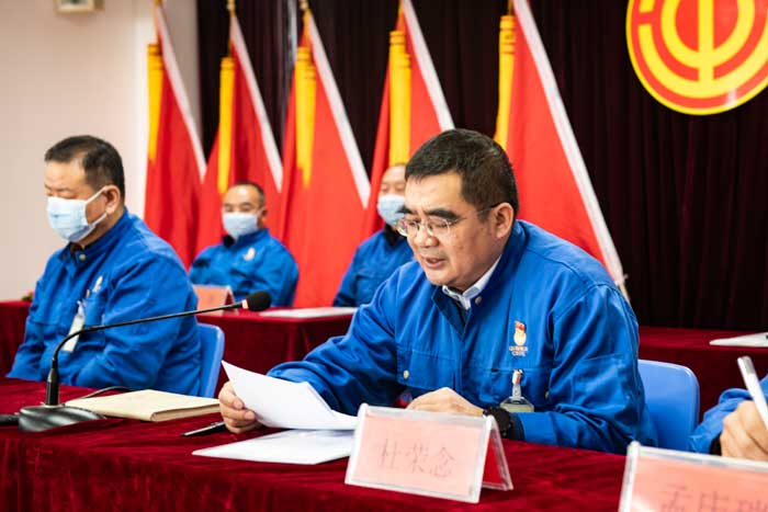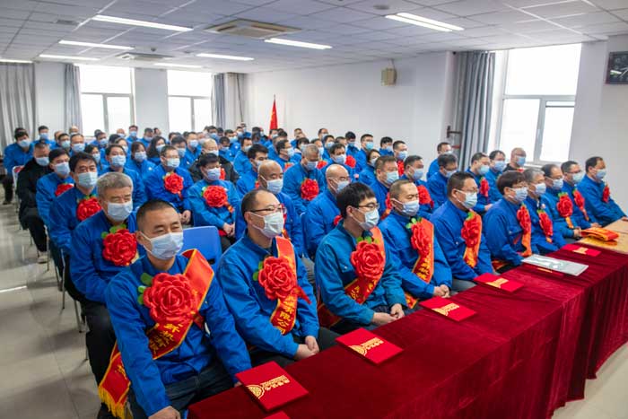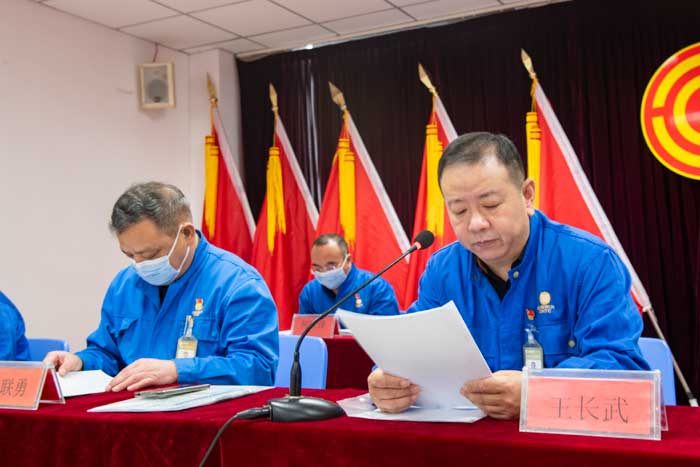 受到表彰的公司勞模、先進個人、先進集體代表身披紅色綬帶,胸前佩戴紅花在會場前排就座。主席團成員王長武、王立偉、石福印、杜榮念、李秋、何巍、何躍澤、況聯勇、孟慶瑞在主席臺就座。非正式代表的公司級領導、各部門主要負責人列席了會議。