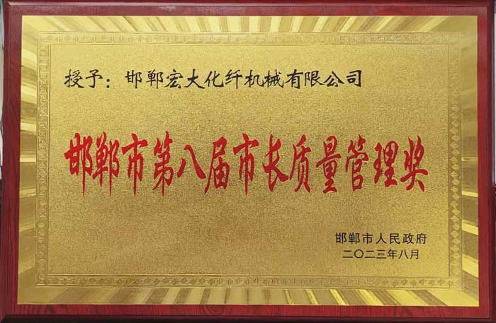 邯鄲市政府于近日公布,授予邯鄲宏大化纖機(jī)械有限公司第八屆邯鄲市市長(zhǎng)質(zhì)量管理獎(jiǎng),成為5家獲評(píng)組織獎(jiǎng)企業(yè)之一。